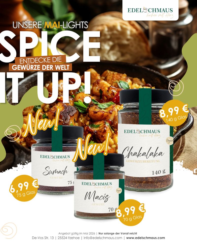 Wir freuen uns über Deinen Besuch und wünschen Dir viel Spaß beim genussvollen Entdecken unserer großen Auswahl an raffinierten Gewürzzubereitungen, Essigspezialitäten, edlen Ölen und vielem mehr.